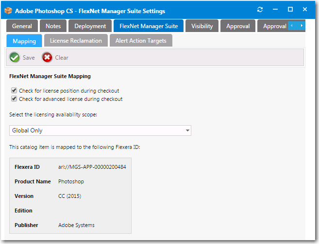 noteFor more information, see Mapping Tab under FlexNet Manager Suite Tab.