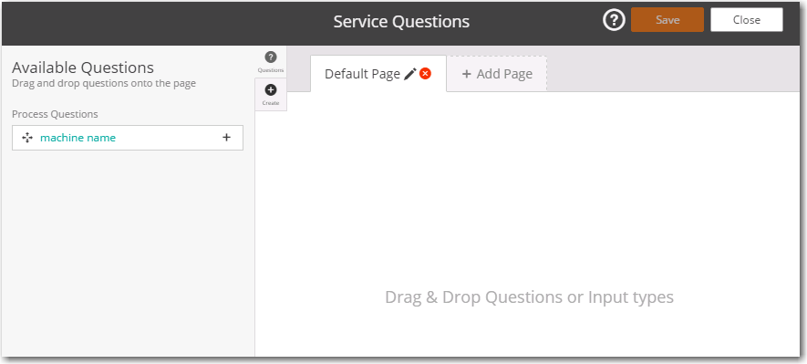 20. Click Save to close the Question Settings view. The Service Questions view opens, displaying the machine name field.