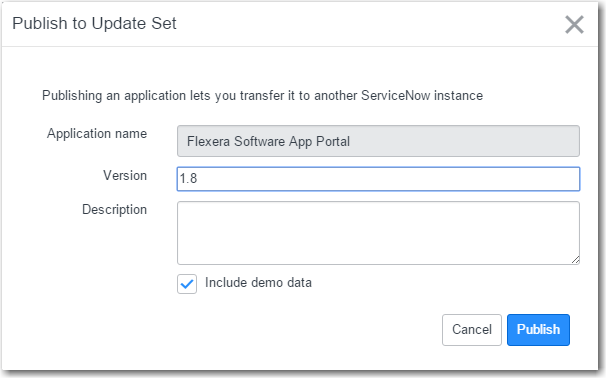 If you decide to modify the Flexera Software App Portal custom application in ServiceNow, you can extract that custom application as an update set XML file so that you can make it available on other instances of ServiceNow.