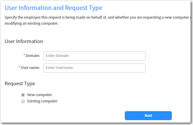 To use the Employee App Provision Request wizard to add a new computer to System Center Configuration Manager and deploy an operating system and applications, perform the following steps: